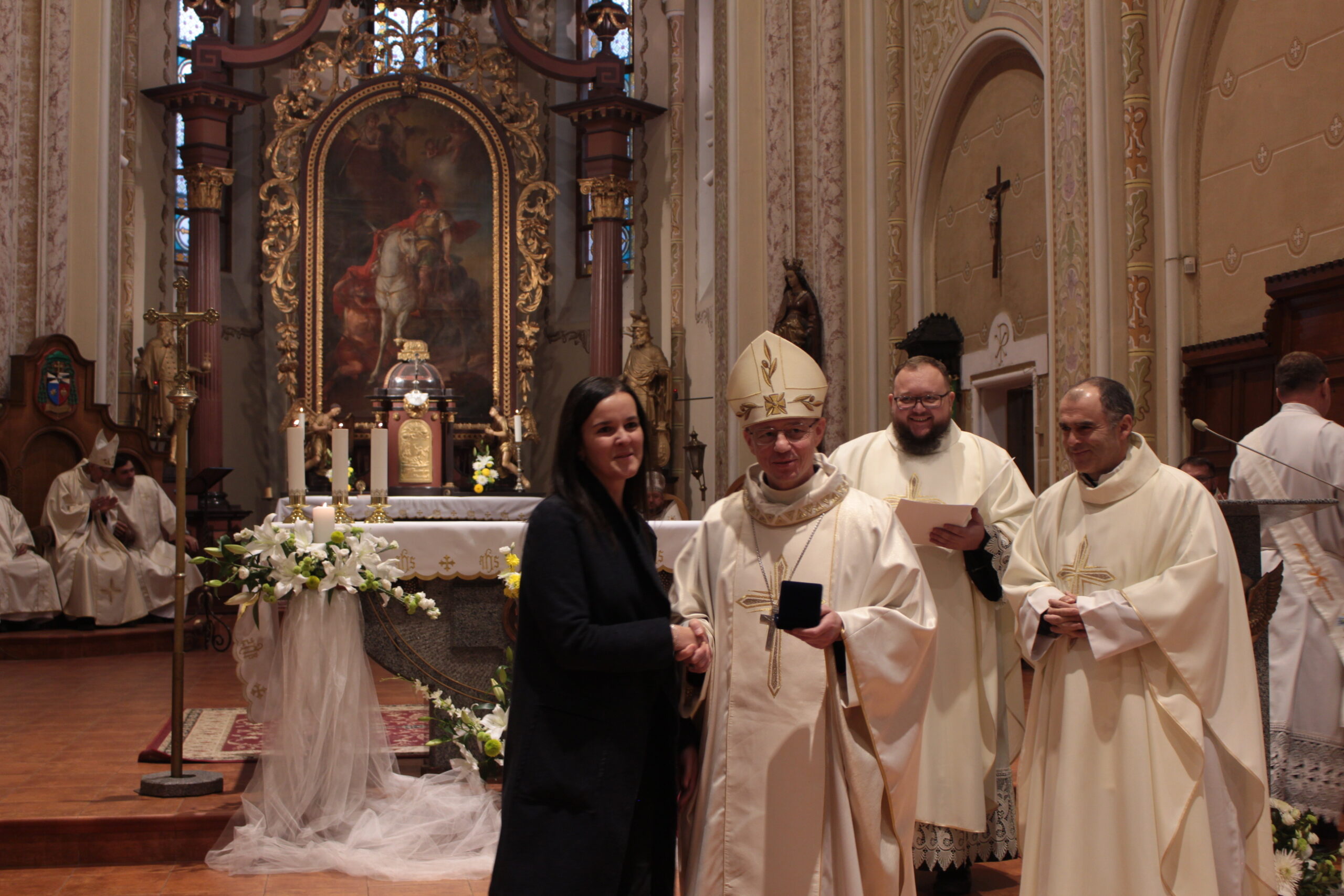 Köszönetet mondott Majnek Antal nyugalmazott püspöknek szolgálatáért, támogatásáért. Beszéde során kihangsúlyozta, hogy  Antal püspök és a székesegyház védőszentje életútjában sok a hasonlóság. Mindkettőjüknek nehéz volt igent mondani a püspöki szolgálatra, de végül mindketten elvállalták ezt a szent küdetést.  Emlékeztetett arra, hogy amikor Szent Márton haldoklott, és testvérei bánkódtak, hogy el fogja hagyni őket, Márton így imádkozott Istenhez: „Uram, ha népednek még szüksége van rám, nem vonakodom a munkától”.