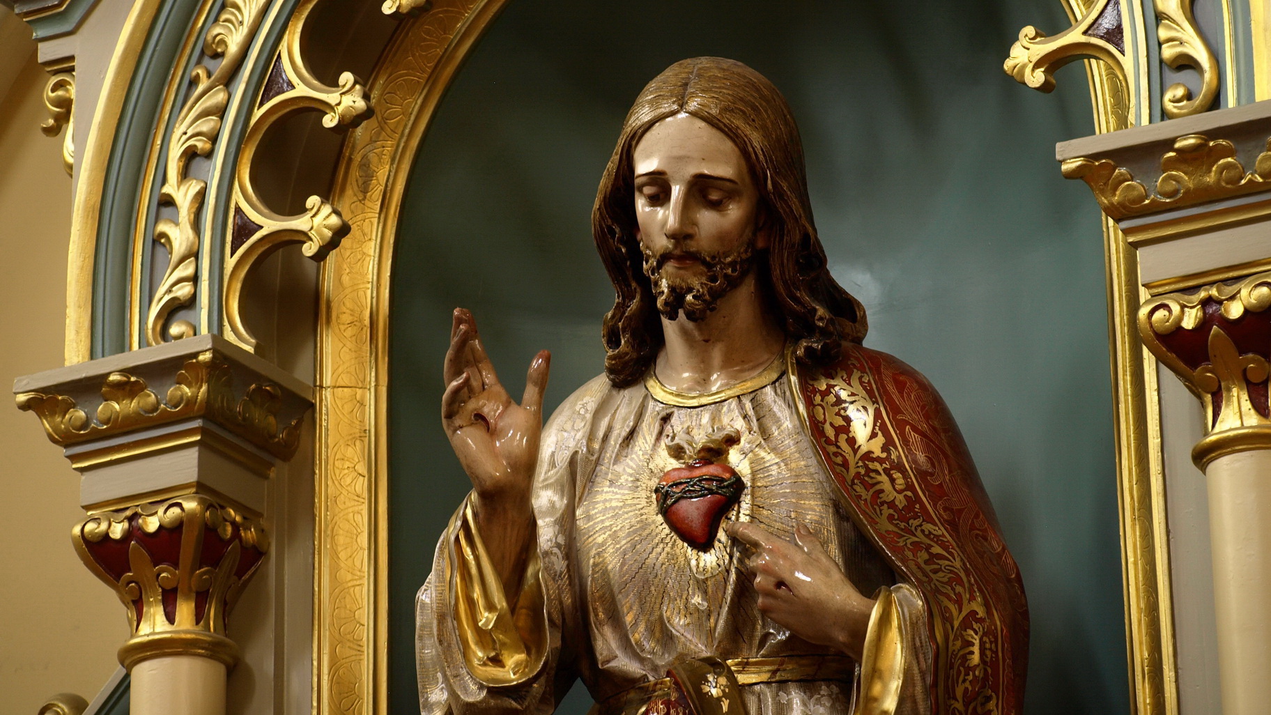 Fotó a cím alatt:Jézus Szíve szobor a Tours-i Szent Márton-székesegyházban, Munkácson