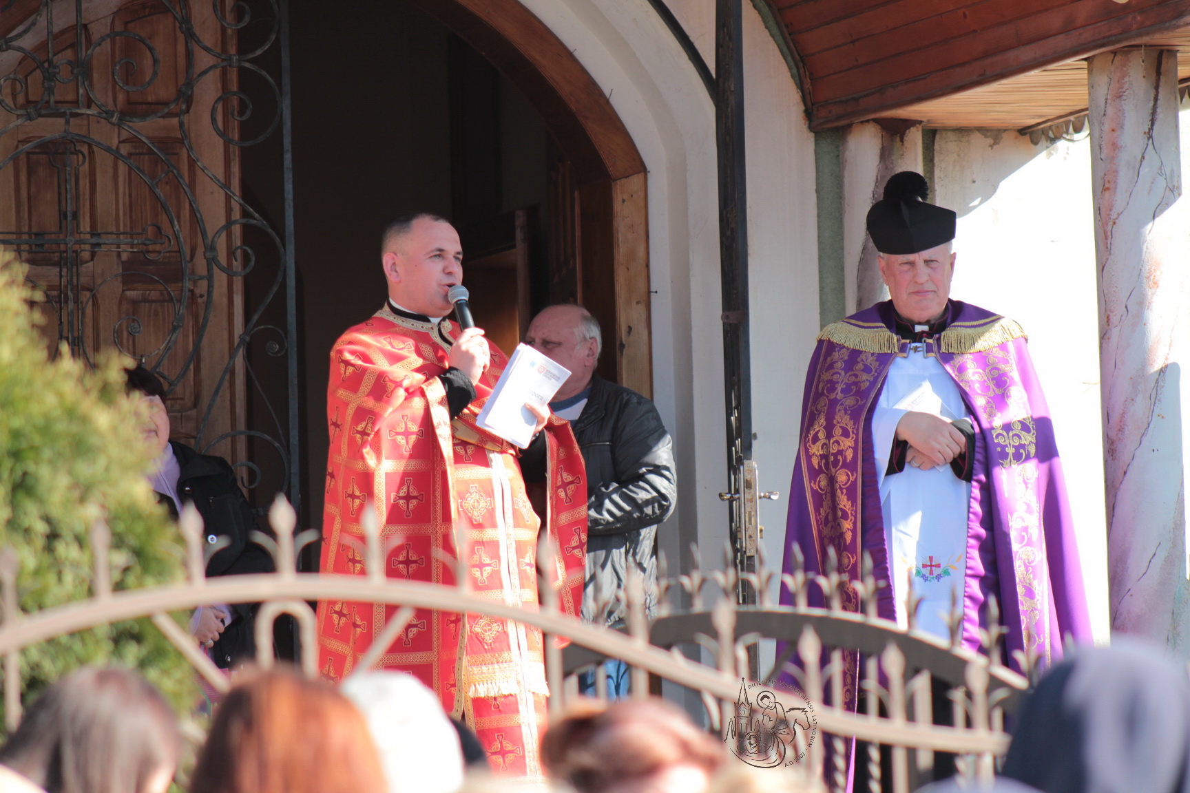 A Munkácsi Római Katolikus Egyházmegye ordináriusát, Lucsok Miklós OP püspököt az általános helynök, Zsarkovszkij Péter atya képviselte, aki a menet elején mondta el bevezető beszédét. Hangsúlyozta, hogy értékelnünk kell mindazt, amit Istentől kapunk, és külön kiemelte a hívő és a hitetlen ember szenvedéshez való viszonya közötti különbséget: „Mindkettő viszi a maga keresztjét, de a hívő ember tudja, hogy terhét Krisztussal együtt hordozza, míg a hitetlen terhének hordása közben folyamatosan csak panaszkodik.” Péter atya arra bátorította a jelenlévőket, hogy figyeljenek mások gondjaira is, imádkozzanak védelmezőinkért, és ajánlják fel szenvedéseiket Istennek, mert „Vele a mi terhünk könnyebbé válik”.