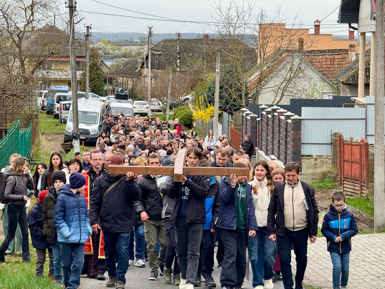 Ezután a hívek elindultak felfelé a hegyoldalon, végigjárva a keresztút állomásait egészen a temetőig. A keresztúton részt vett Lucsok P. Miklós OP, a Munkácsi Római Katolikus Egyházmegye püspöke, Gerzanics Szerhij püspöki irodaigazgató atya, Pogány István atya, Hortobágyi Arnold OSB atya, Janik Péter atya, Thurzó Péter atya, Megyesi László és Bacsó Róbert állandó diakónusok. A résztvevők minden stációnál megálltak, imádkoztak és elmélkedtek Jézus szenvedésén. Nekünk, embereknek is végig kell mennünk elmúló életünk útján. Nehéz időket élünk, és életünkben gyakran olyan problémák, nehézségek adódnak, amelyek megoldhatatlannak tűnnek, így életünk szinte keresztúttá válik. De az Úristen erőt ad, hogy felálljunk és tovább folytassuk utunkat. Krisztustól azt kell megtanulnunk, hogyan éljünk emberhez méltóan és keresztény módon, hogy végül eljuthassunk az üdvösségre.