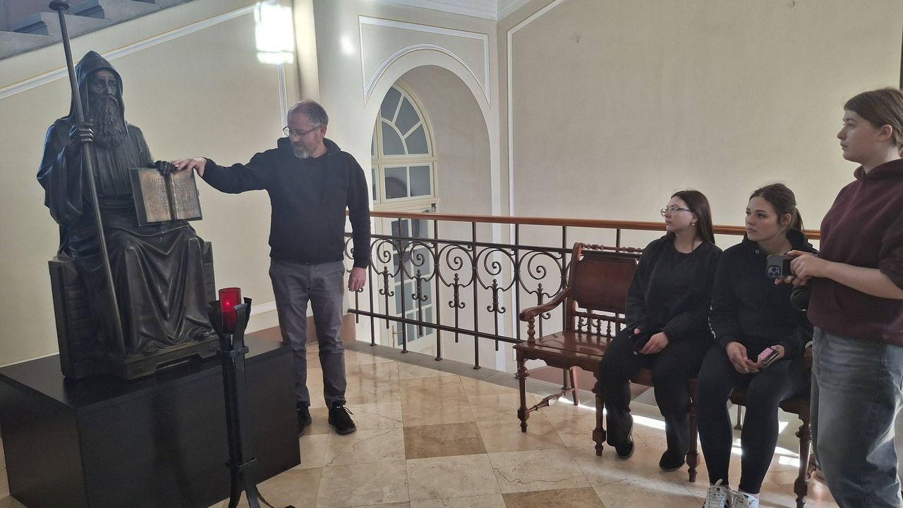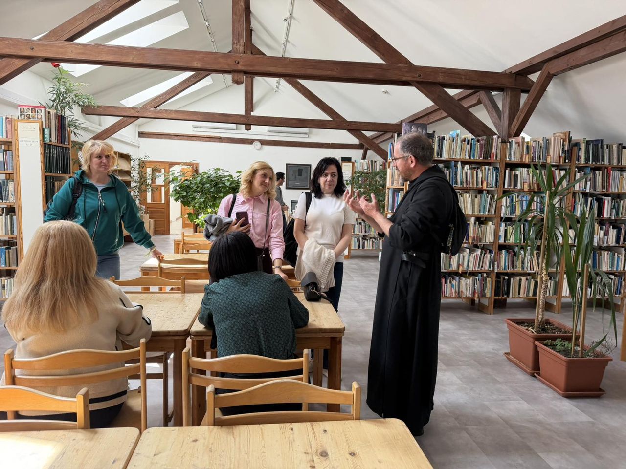 Szombaton reggel a csoport a Tihanyi Bencés Apátságba látogatott. Itt Mihályi Jeromos perjel atya fogadta őket, aki röviden ismertette a tihanyi bencés monostor történetét és jelentőségét.