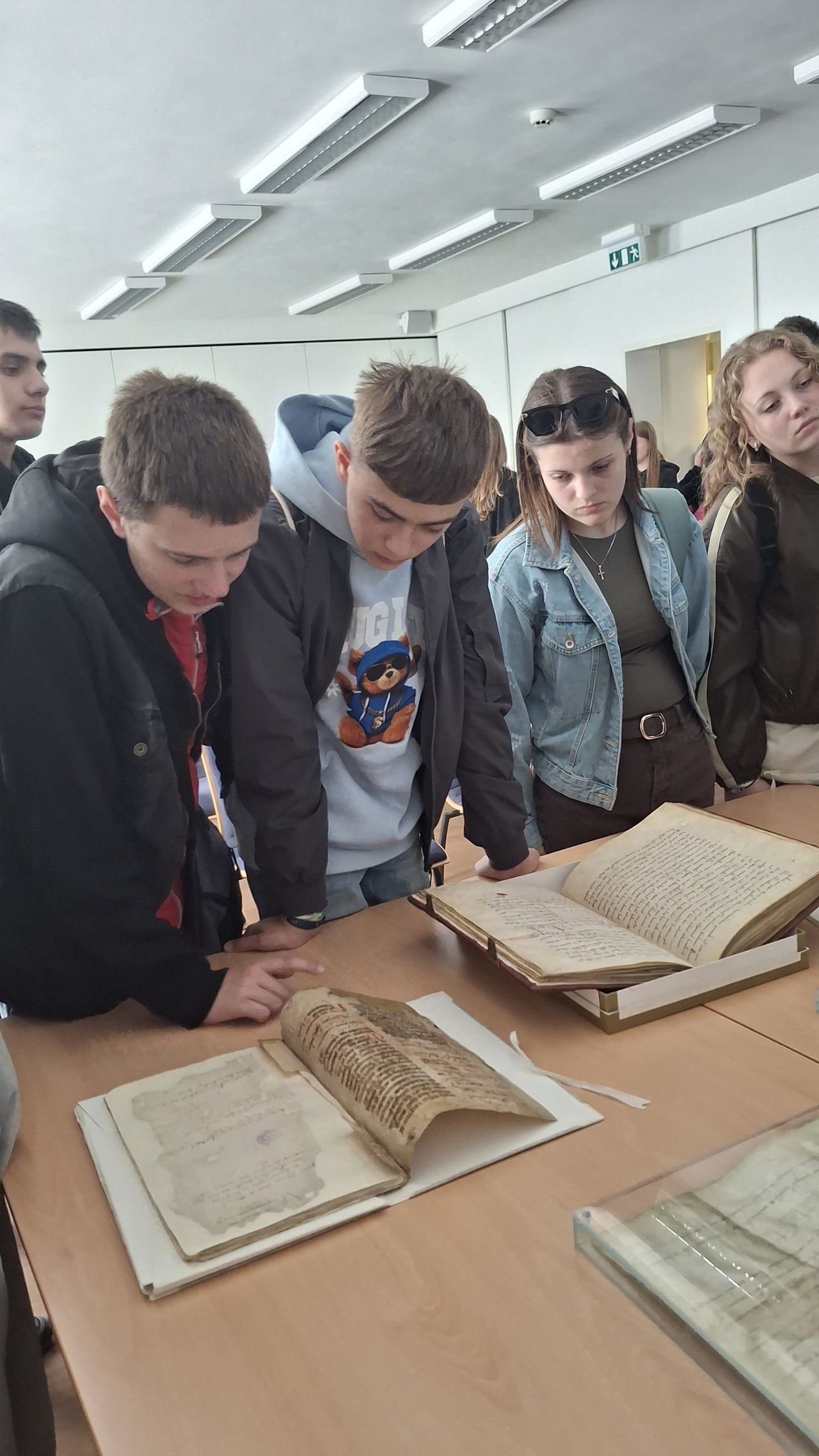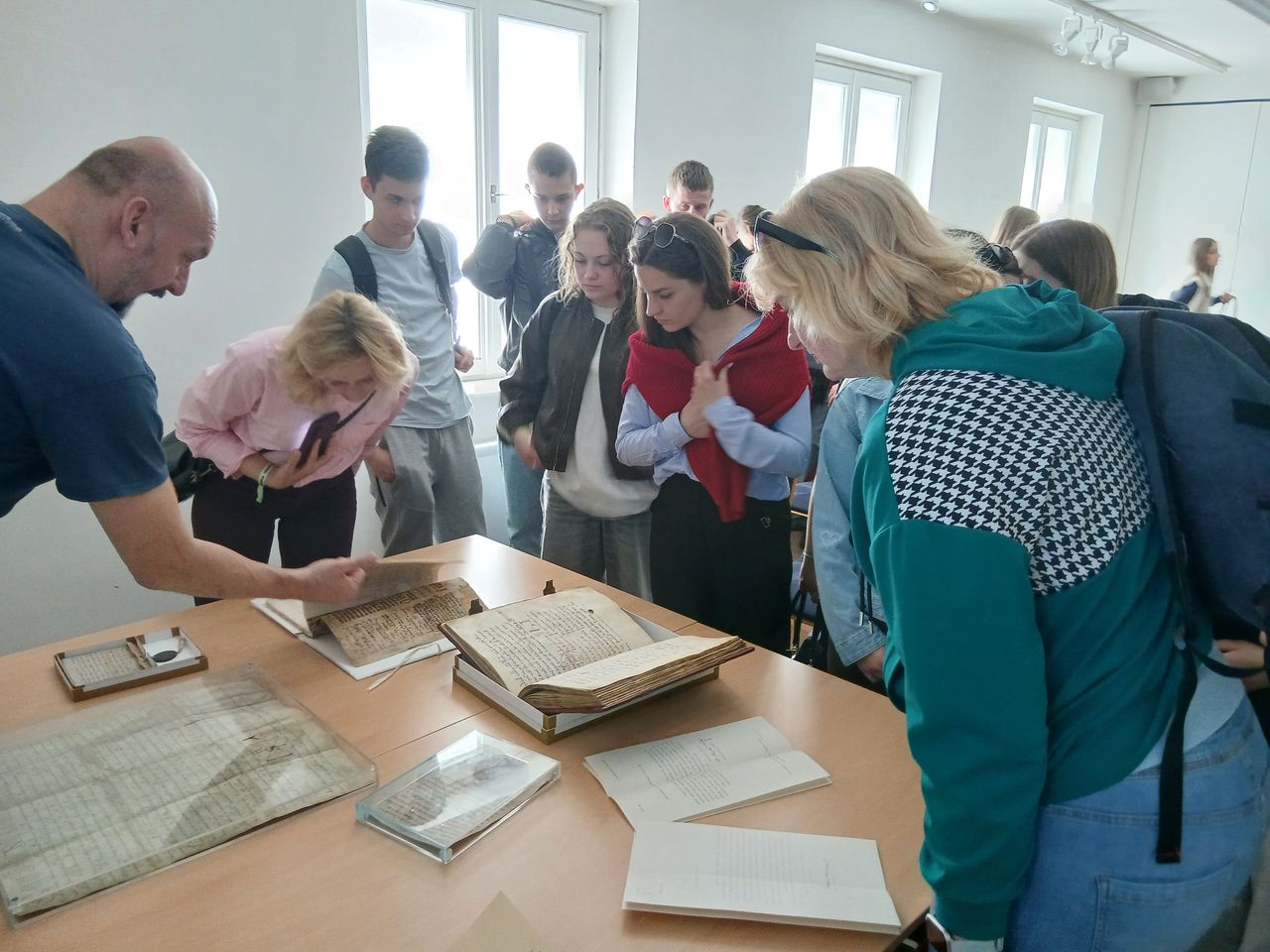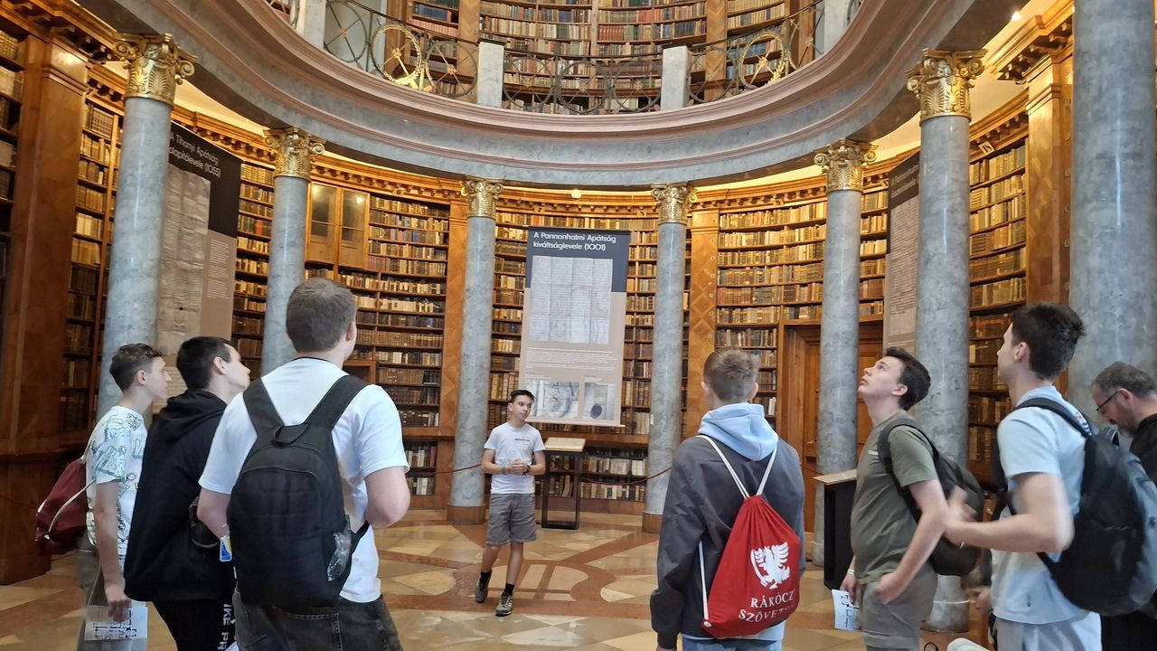 Délután a csoport ellátogatott a Pannonhalmi Főapátsági Levéltárba, amely rendkívül érdekesnek bizonyult. A diákok megtekintették a bencés rend és a régió középkori történetéhez kapcsolódó felbecsülhetetlen értékű oklevélgyűjteményt: többek közt az itt őrzött pannonhalmi kiváltságlevelet, a Liber ruber-t, amely számos középkori oklevelet tartalmaz, valamint a Tihanyi Bencés Apátság alapító levelét, amely a legrégibb magyar írásos nyelvemlék 1054-ből.