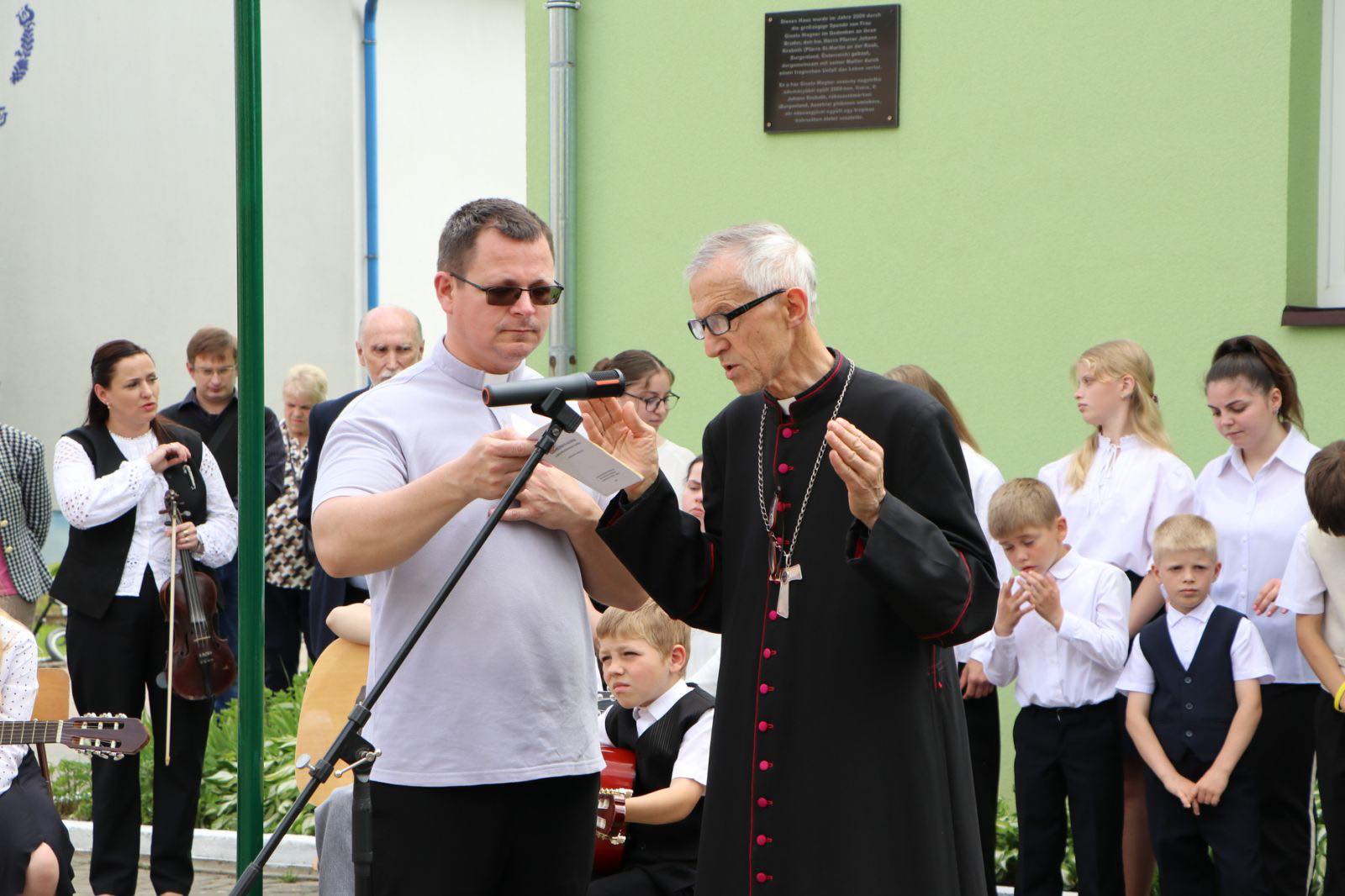 Урочистості розпочалися з богослужіння у капличці, яке очолив єпископ-емерит Мукачівської дієцезії Римсько-Католицької Церкви Антал Майнек. Привітали родину керівниця Служби у справах дітей Закарпатської обласної військової адміністрації Світлана Якімеліна, провідний консул Генерального консульства Угорщини в Ужгороді Чех Арон, директор Закарпатського обласного благодійного фонду Святого Мартіна Федір Фегер та інші гості.