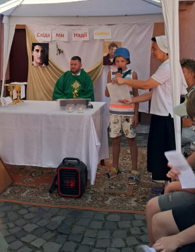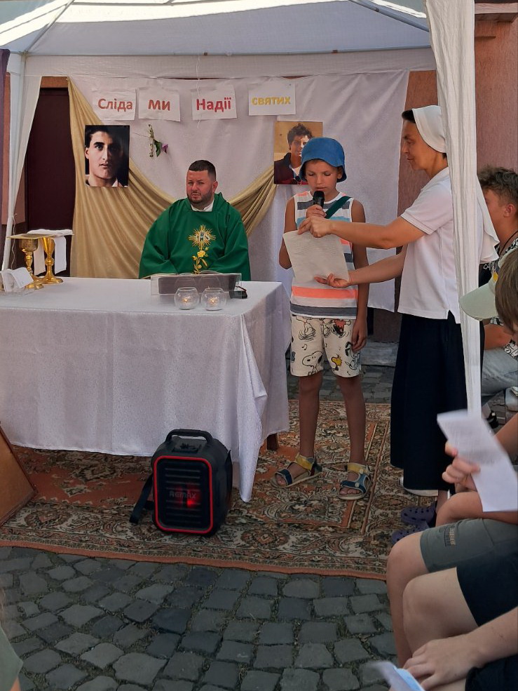 Щодня всі разом молилися Коронку до Божого милосердя за закінчення війни в Україні. Кожен день для всіх учасників табору була Свята Меса. Євхаристія об’єднувала всіх і була центром дня, як колись і для П’єра Джорджо Фрассаті та Карло Акутіса.