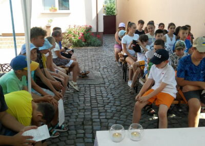 Відомо, що Закарпаття більш спокійний регіон у цьому часі війни в Україні, але оголошення тривоги є і тут. Так було й одного дня, коли діти брали участь у цьому денному таборі. Коли було оголошено тривогу, незважаючи на те, хто чим був зайнятий у цей час у своїх групах, всі зібралися разом та молилися Розарій за наших військових, усіх тих, хто нас захищає, але й за тих, чиє життя в небезпеці. Впродовж одного десятку було оголошено про відбій тривоги, але у цей час слова молитви були справді насичені прагненням миру.