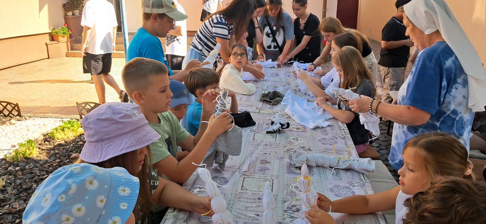 «Впродовж тижня задоволеними були не лише наші серця, а й наші руки. Ми фарбували футболки та робили власні кухолі на гончарному колі з глини своїми руками відповідно до нашої уяви. Одного дня ми поїхали на екскурсію до Хуста, там у нас була Свята Меса, потім ми піднялися на Хустський замок. Для дітей найцікавіше було в кінці, коли ми відвідали ферму з тваринами, де юні мукачівські парафіяни могли їх погодувати», – розповідає с. Савія Кашшайова ОР, організаторка табору.