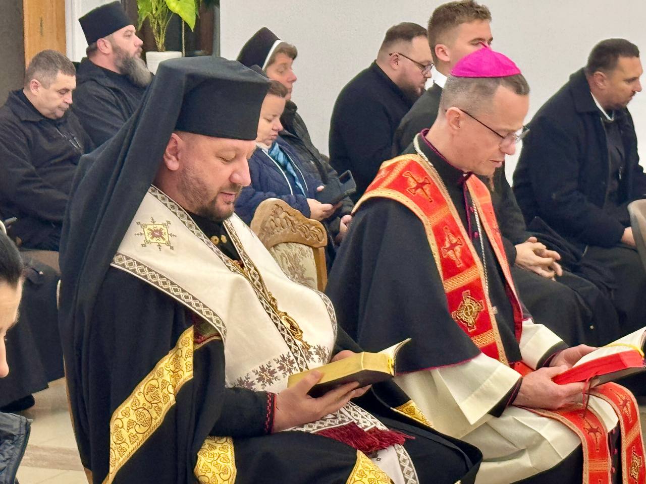 Нагадаємо, що цього ж дня о 12:00 годині відбулося урочисте богослужіння з нагоди відзначення храмового свята римсько-католицького кафедрального собору святого Мартина Турського у м. Мукачеві, у якому на запрошення єпископа Миколи Лучка ОР взяли участь єпископ Теодор Мацапула та священники Мукачівської Греко-Католицької єпархії.